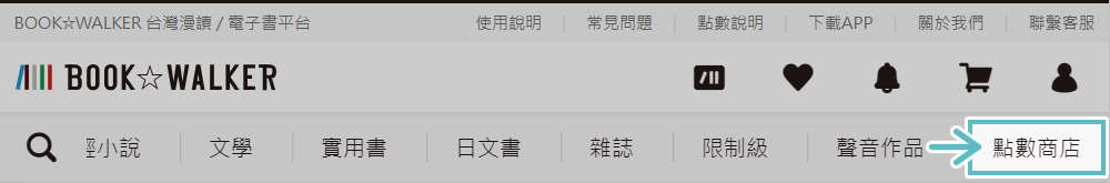 由BOOK☆WALKER 消費、參加活動中取得之點數,可至「點數商店」兌換各種點數商品!