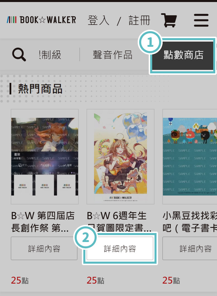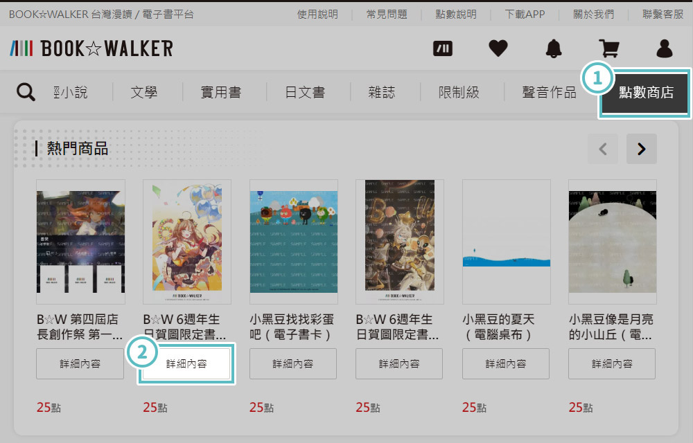 挑選您想要兌換的商品。 - 2點選商品上的「詳細內容」按鈕,