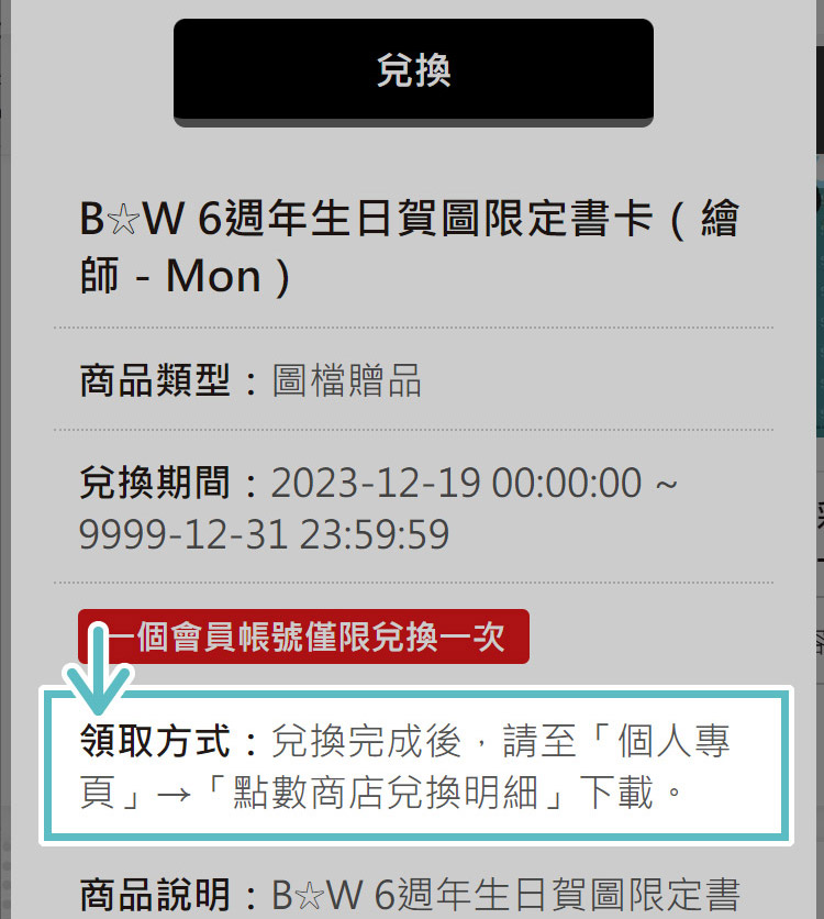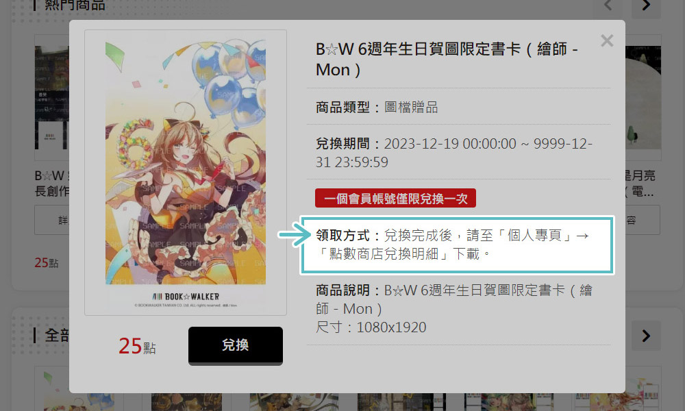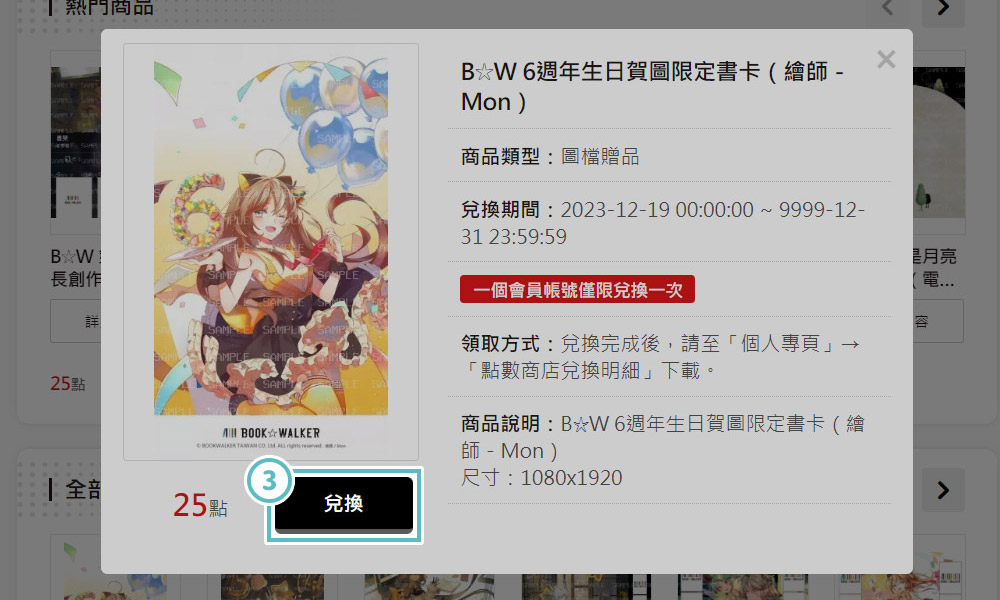 確認商品內容。 - 3點選「兌換」按鈕進行兌換。